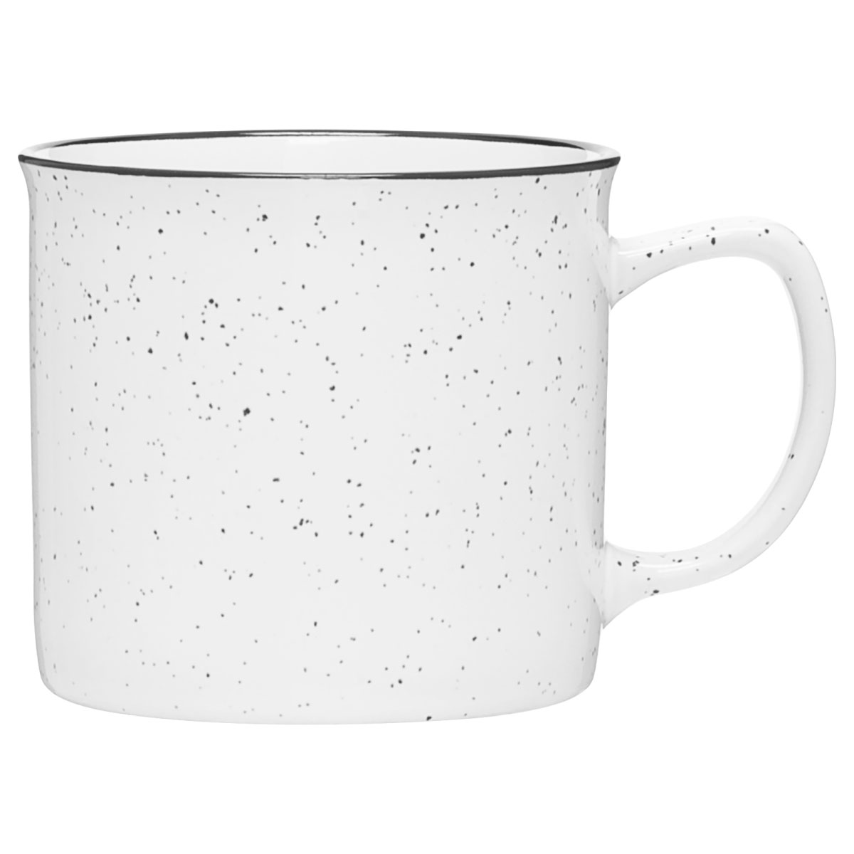 The 12 oz Cambria Ceramic Mug brings a timeless camp-style design to your coffee shop or retail lineup. With its glossy speckled exterior, crisp white interior, and bold black rim, this ceramic mug delivers rustic charm while remaining versatile for daily use. The 12-ounce size is perfect for serving coffee, tea, or cocoa, making it a customer favorite for cozy mornings or office routines. When customized with your logo, the Cambria becomes a retail-ready staple that fits seamlessly into coffee shop merch displays or boutique gift collections. Durable, stylish, and nostalgic, this speckled camp mug helps your brand stay connected to every sip.