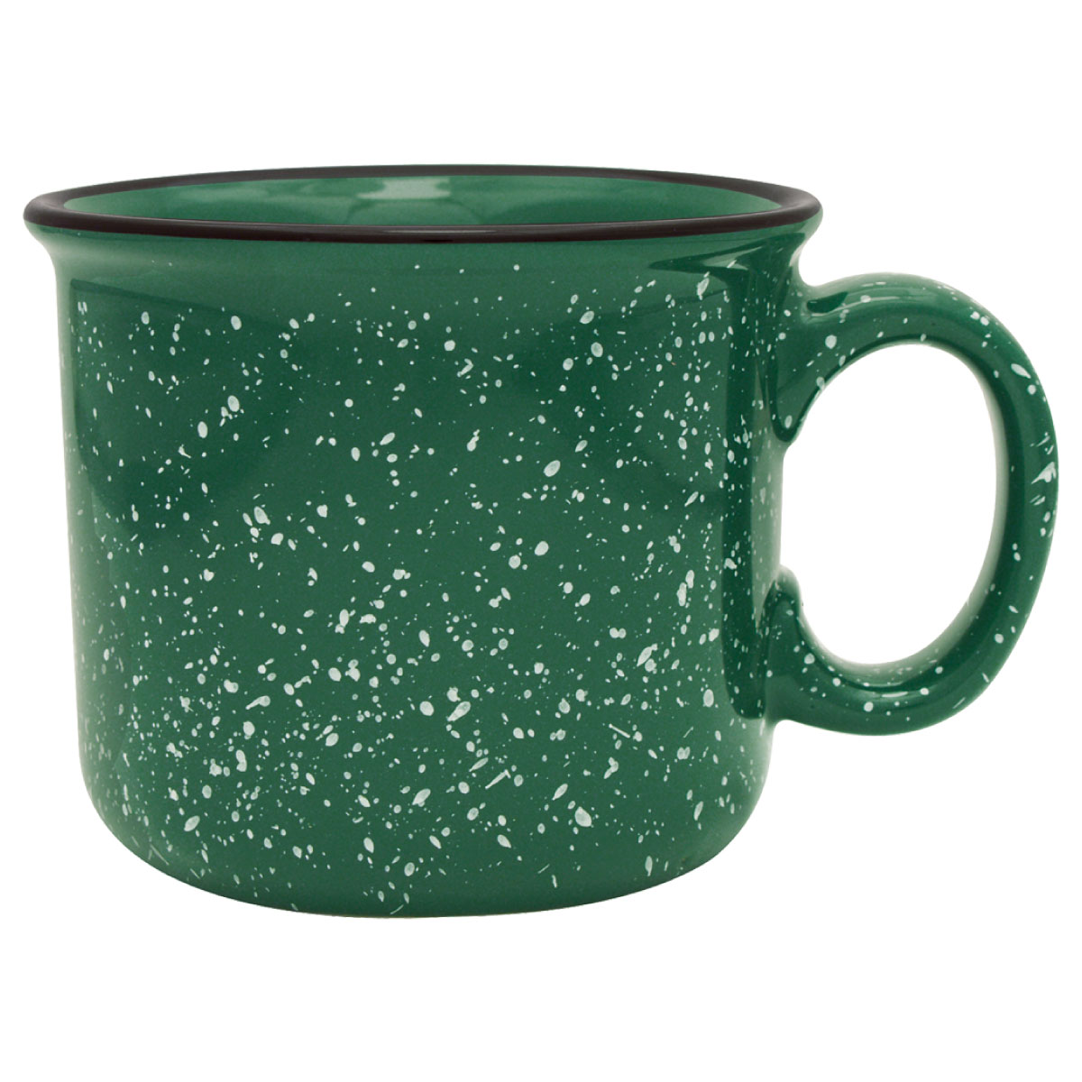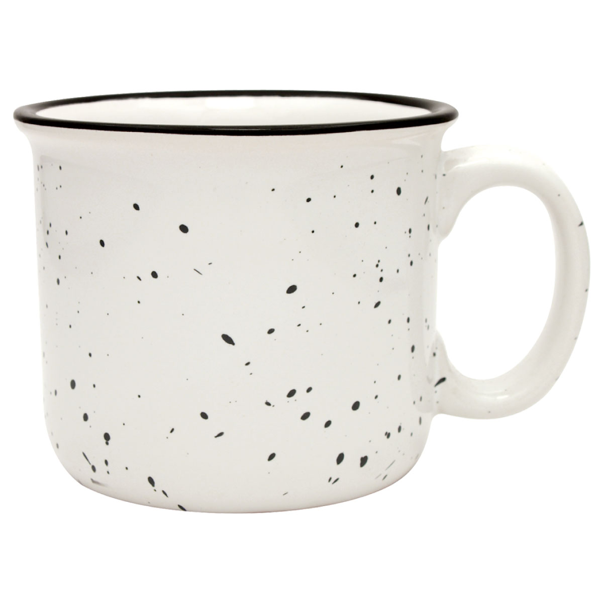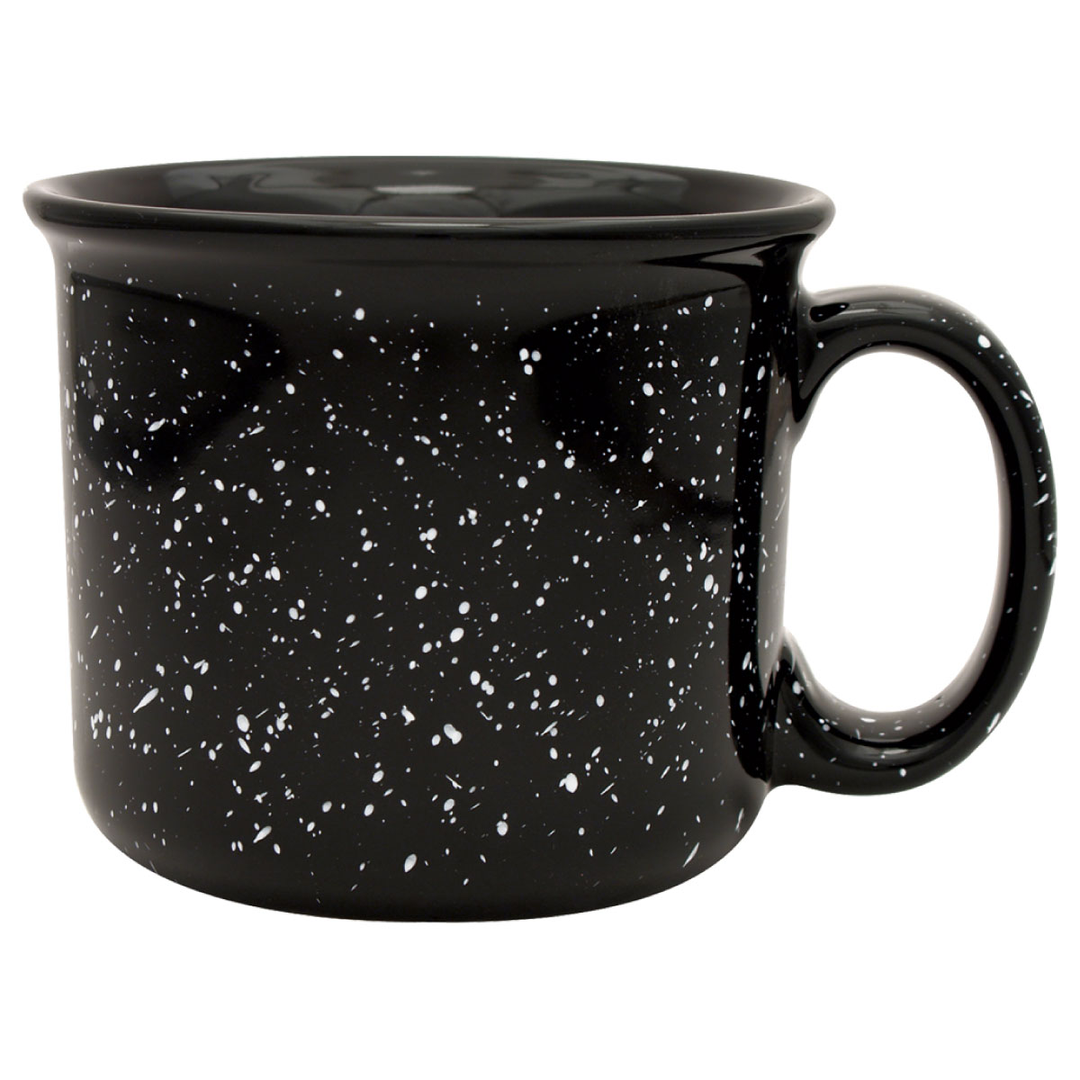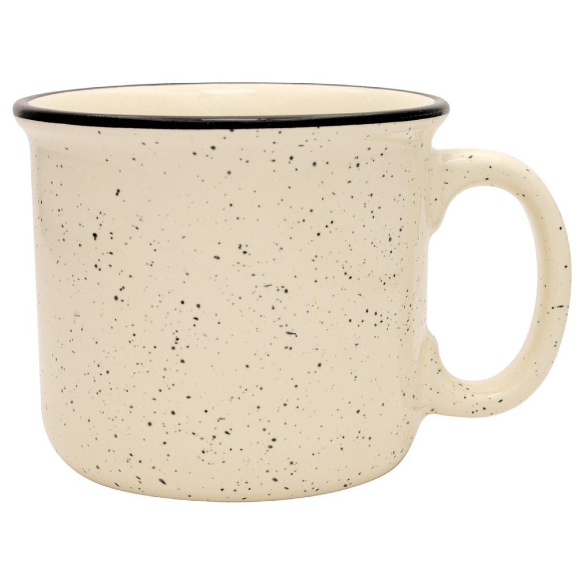 Bring a touch of retro charm to your branding with the 14 oz. Ceramic Camper Mug. Featuring a classic granite-inspired speckled glaze and a bold black halo around the rim, this mug delivers a nostalgic look that customers love while giving your logo the spotlight it deserves.