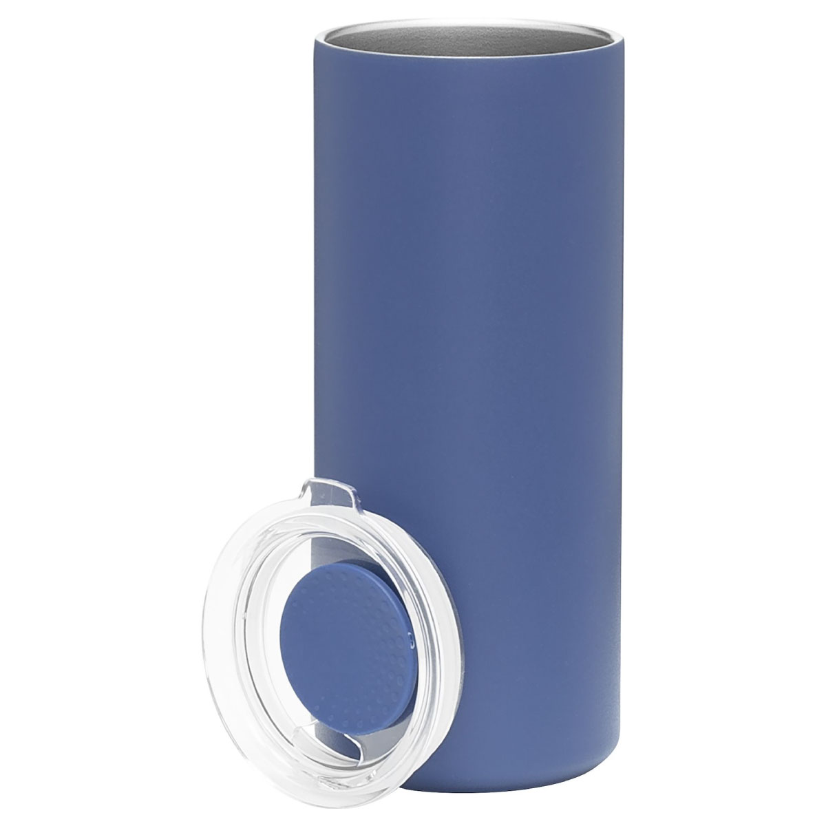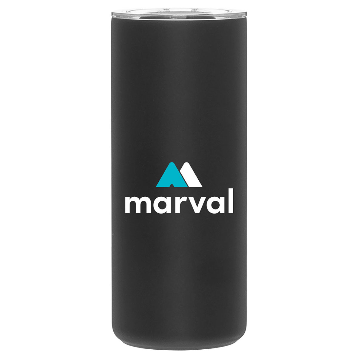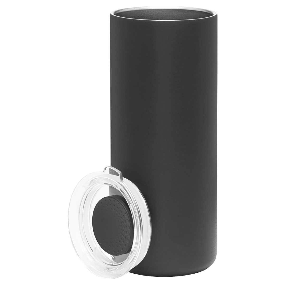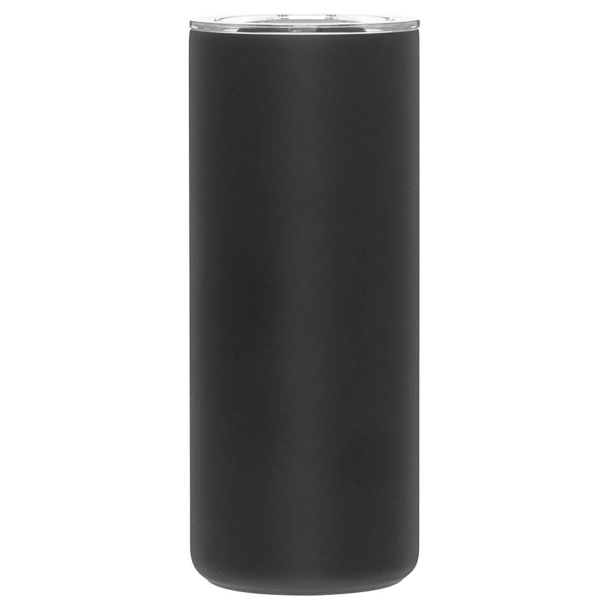 This versatile piece doubles as a slim can cooler and tumbler, offering customers two functions in one. The clear push-on lid with matching swivel closure ensures spill-resistant sipping, while the powder-coated finish provides added grip, durability, and a polished retail look.