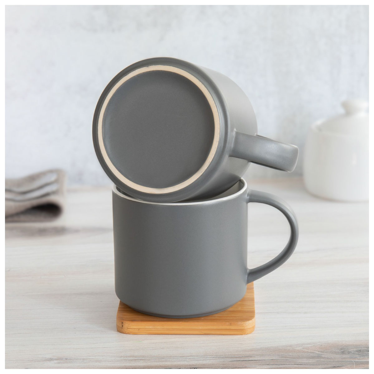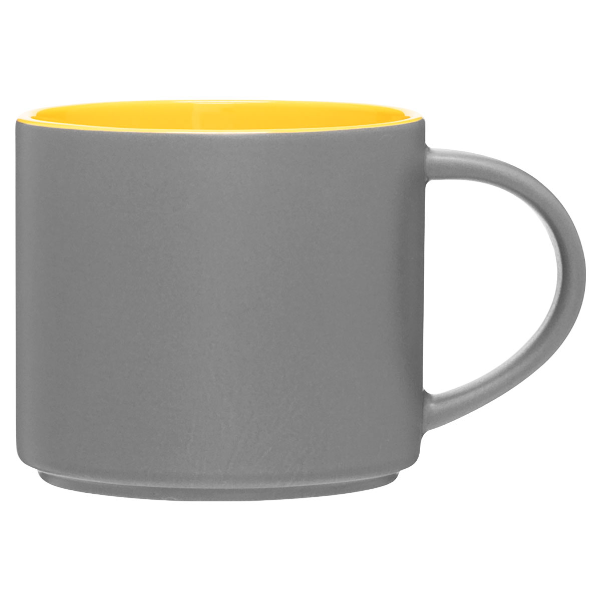 The Monaco 16 oz ceramic mug combines modern simplicity with everyday functionality—an excellent choice for retail displays and coffee shop branding. Its matte gray exterior gives a sleek, contemporary feel, while the glossy colored interior adds a vibrant pop of contrast. The stackable design saves space in cafés, offices, and home kitchens, making it practical for busy environments. With plenty of room for coffee, tea, or hot cocoa, this two-tone mug offers the perfect balance of style and function, especially when decorated with your custom logo or shop name.