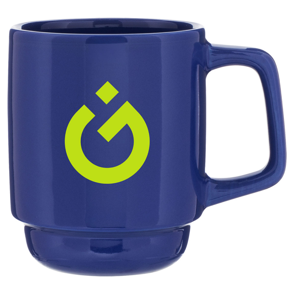 The Olly 16 oz ceramic mug blends modern design with everyday practicality, making it a smart choice for coffee shop merchandising and retail displays. With its glossy colored exterior and matching interior, this mug offers a polished, cohesive look that highlights any custom logo. The convenient stackable design saves space in busy cafés, offices, or home kitchens, while its 16-ounce capacity is perfect for generous servings of coffee, tea, or cocoa. Durable and stylish, the Olly Mug is an excellent option for branded giveaways, boutique retail sales, or in-store drinkware programs—helping your brand stand out with every sip.
