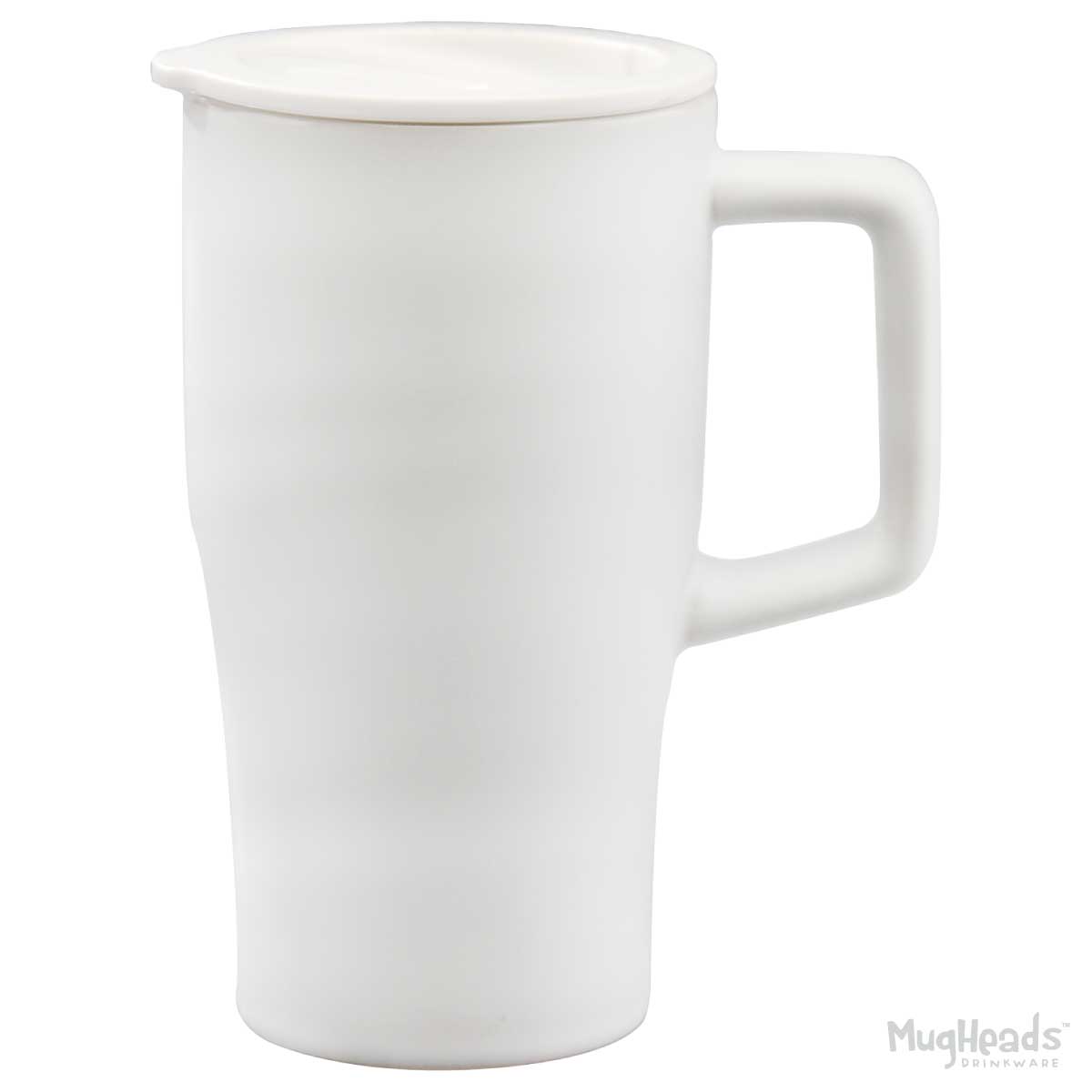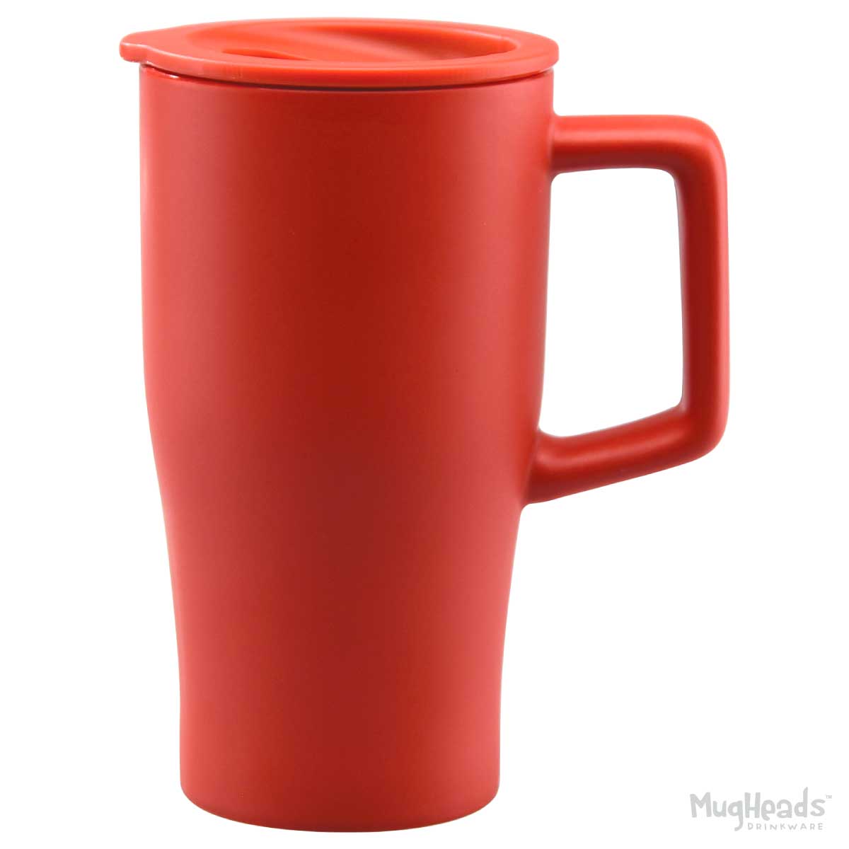 Its sleek, matte-finish exterior creates a premium canvas for custom logos, café branding, or promotional designs, making it an ideal choice for coffee shop merchandise programs and retail resale. The large, easy-grip handle provides a comfortable hold, while the color-coordinated push-on lid with thumb-slide closure helps prevent spills and keeps drinks secure during commutes, errands, and travel.