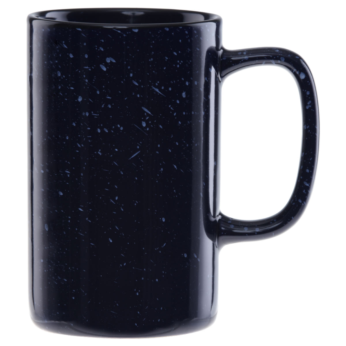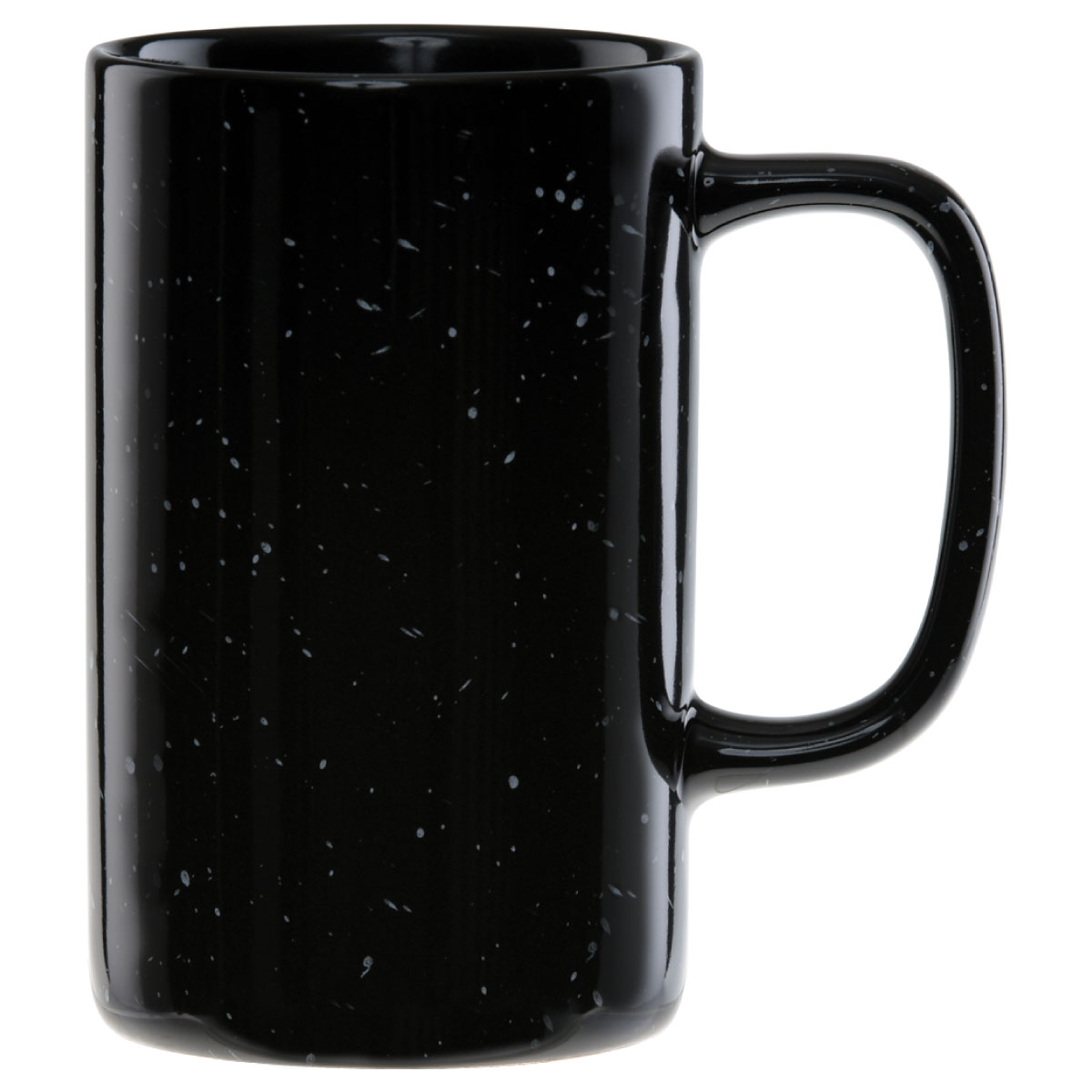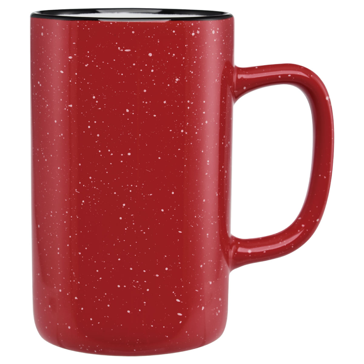 Designed with a speckled granite-style glaze and finished with a bold black halo around the rim, this tall camper mug gives your brand a rugged yet stylish backdrop. The solid and sturdy ceramic construction ensures long-lasting durability, so your custom logo will keep shining through countless uses.
